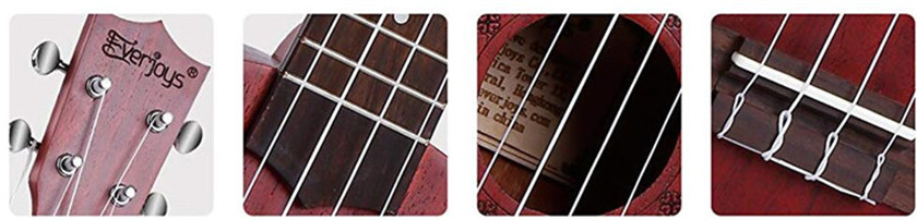 Fácil de aprender: gaste mais tempo tocando e menos tempo afinando! Afinadores precisos e suaves, em estilo cromado , para manter seu ukulele sempre afinado. 12 trastes de níquel prateado com trastes corretos, com marcas nos dias 5, 7 e 10 do pescoço, na parte superior do braço
