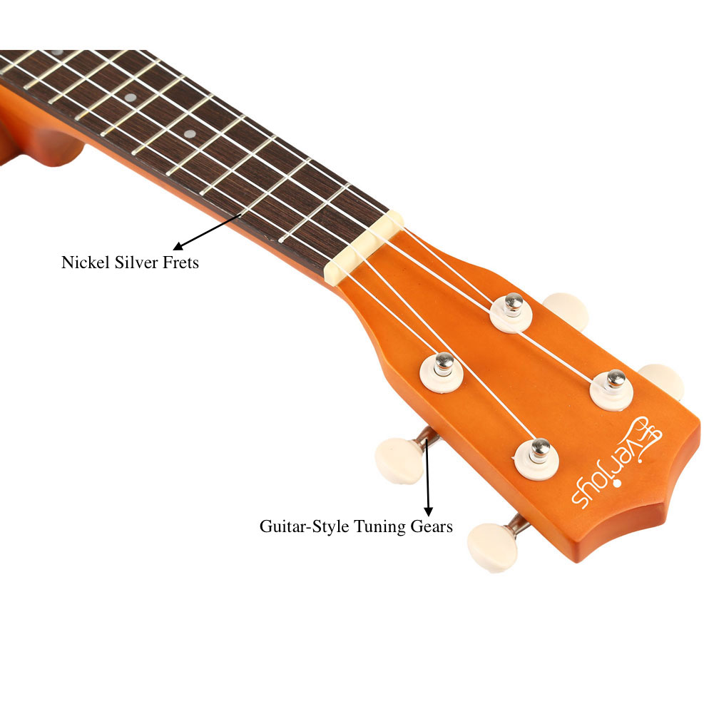Fácil de aprender: gaste mais tempo tocando e menos tempo afinando! Afinadores precisos e suaves, em estilo cromado , para manter seu ukulele sempre afinado. 12 trastes de níquel prateado com trastes corretos, com marcas nos dias 5, 7 e 10 do pescoço, na parte superior do braço